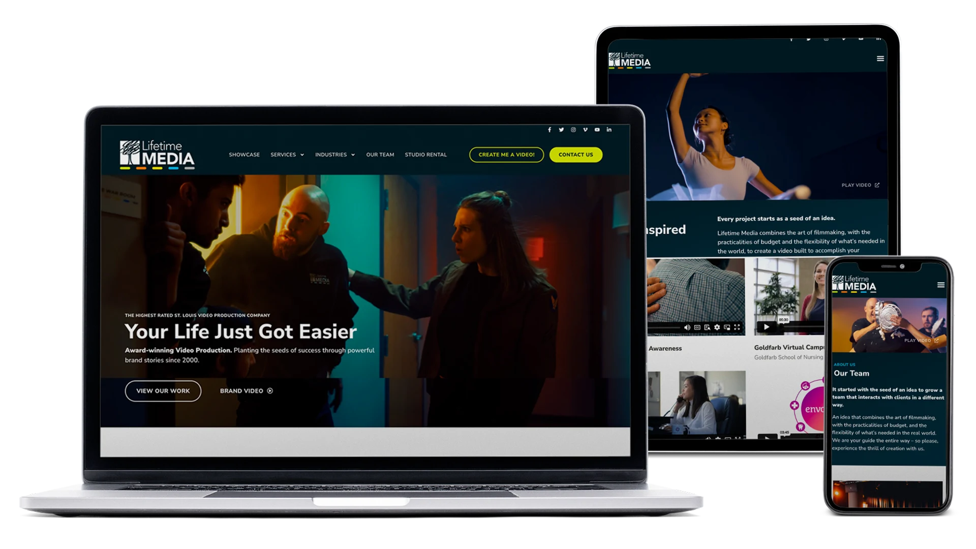 Lifetime Media was originally designed using a pre-built Squarespace theme about 10 years ago, and the content and design was no longer reflective of the breadth or quality of work they were producing. The initial site architecture wasn’t built with future expandability in mind, and Lifetime was having difficulty figuring out how to keep it alive with its limitations.